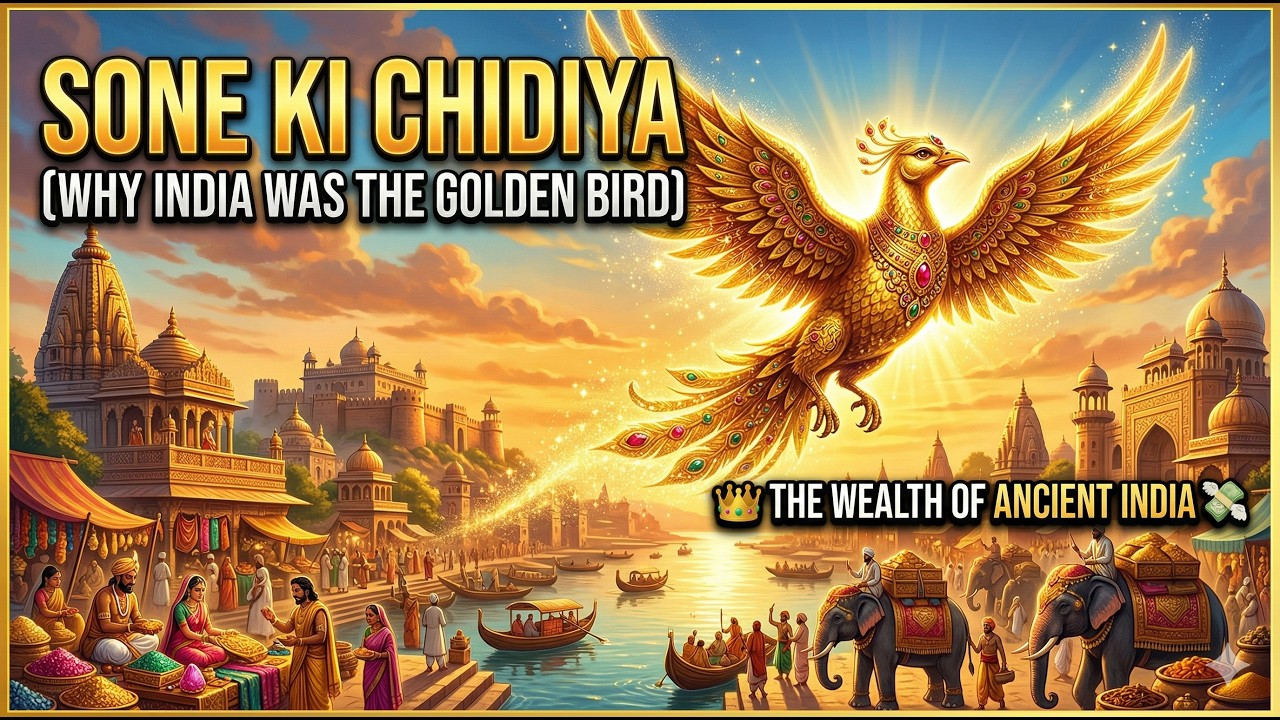 Explainerv1.0Create a video explaining why India was called 'Sone Ki Chidiya' (The Golden Bird), with narration in Hindi. Tone: proud, historical, and educational.